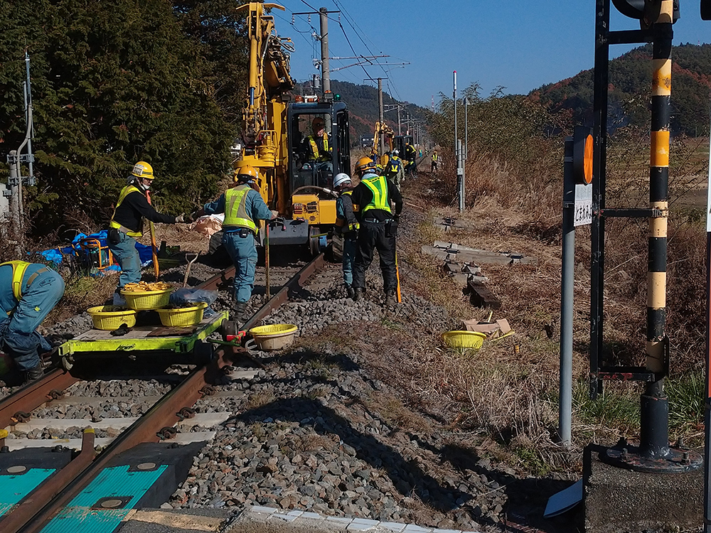 鉄道工事は列車が運行していない短い時間で行う必要があるため、チームワークは欠かせません。